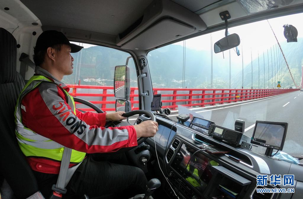 7月22日,司機(jī)劉思駕駛運(yùn)送疫苗的冷鏈車(chē)經(jīng)過(guò)大渡河。新華社記者 彭子洋 攝