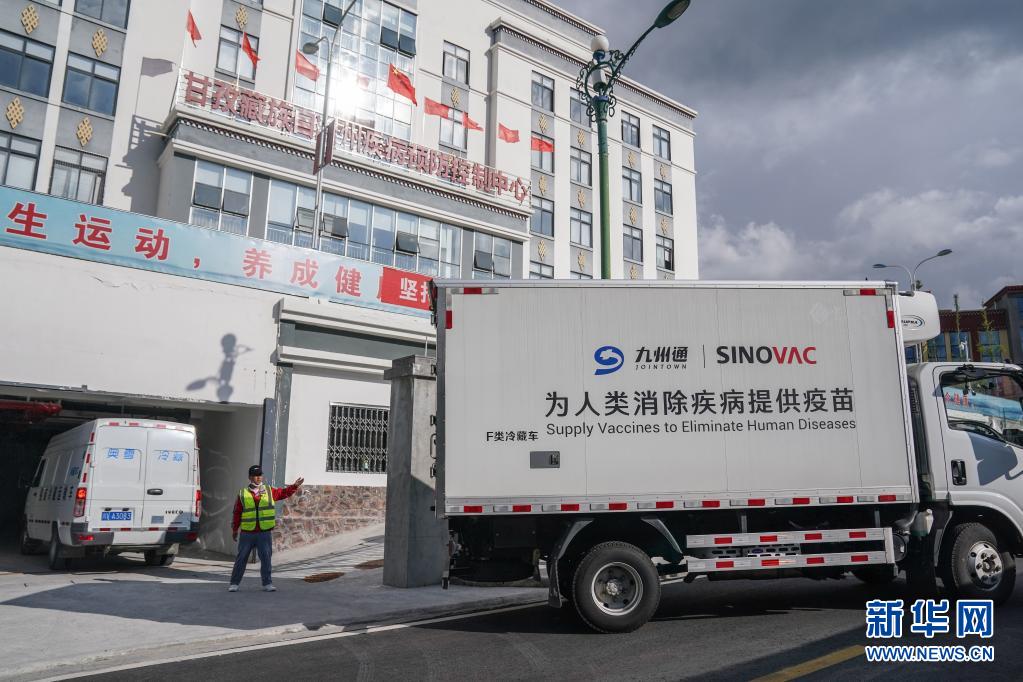 7月22日下午,運(yùn)送疫苗的冷鏈車(chē)歷經(jīng)40多個(gè)小時(shí)后到達(dá)四川甘孜藏族自治州疾控中心。新華社記者 彭子洋 攝