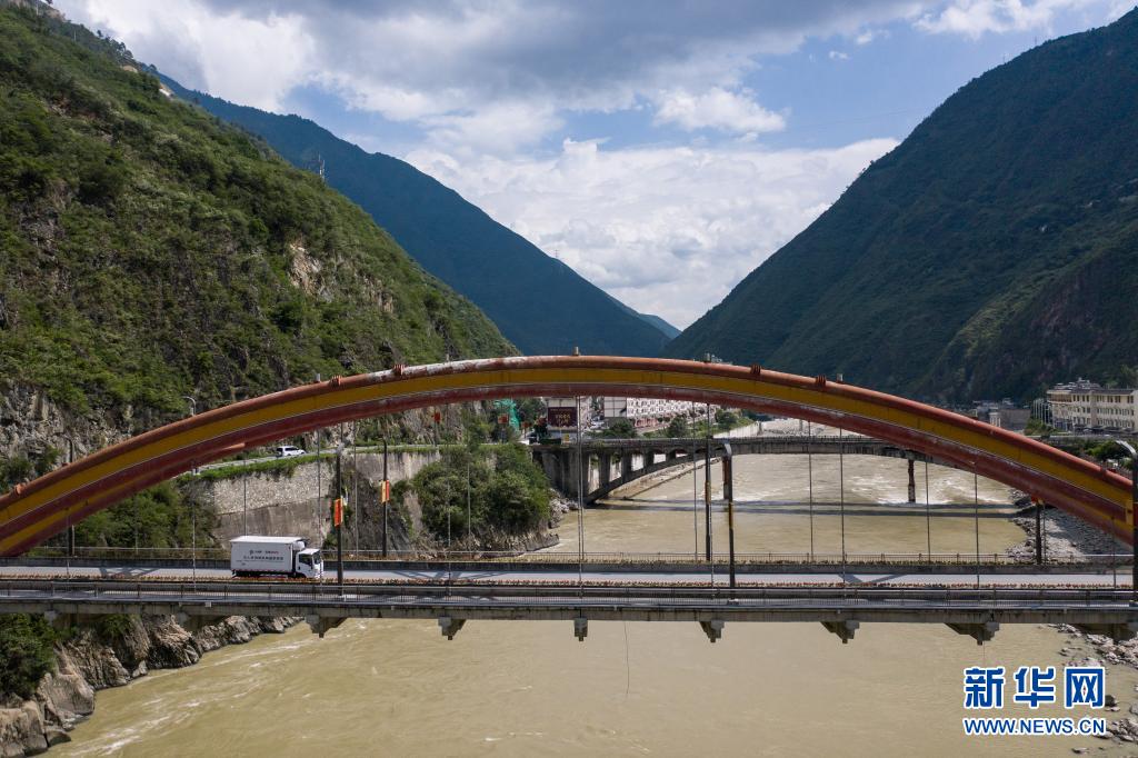 7月22日,從北京一路駛來(lái)的疫苗冷鏈車(chē)經(jīng)過(guò)大渡河。新華社記者 彭子洋 攝