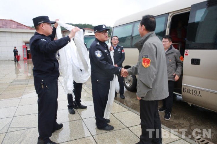 圖為吉隆出入境邊防檢查站民警歡迎醫(yī)療專家的到來