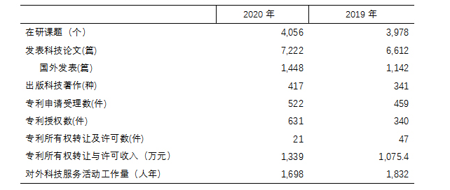2020年全國中醫(yī)藥科研機構(gòu)在研課題共4,056個,比2019年的3,978個增加了78個,增幅2.0%。發(fā)表科技論文7,222篇,其中國外發(fā)表1,448篇,出版科技著作417種。比2019年全國中醫(yī)藥科研機構(gòu)發(fā)表的6,612篇科技論文增加了610篇,增幅為9.2%。