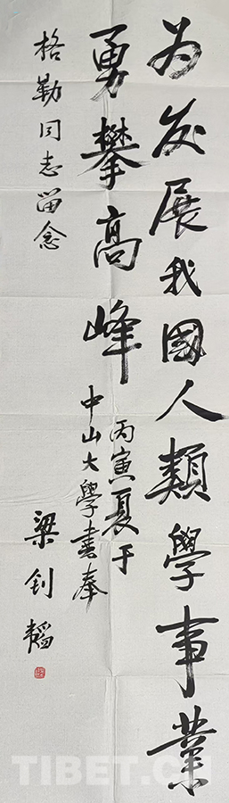 這次我給中大捐贈了珍藏已久的梁先生為我題寫的畢業(yè)贈言。他要我為發(fā)展我國人類學(xué)事業(yè)勇攀高峰,我知道以我的能力和年齡,今生不一定能攀登高峰,但我依然在努力,依然在奮斗。近二十多年來,我在一些大專院校兼任博士生導(dǎo)師,為培養(yǎng)中國馬克思主義藏學(xué)家和人類學(xué)家而辛勤耕耘,尤其是2011年從行政崗位退下來以后,我已經(jīng)全身心地投入到培養(yǎng)中國藏學(xué)和人類學(xué)接班人的教學(xué)工作中,不辜負(fù)梁釗韜導(dǎo)師的贈言和中大領(lǐng)導(dǎo)以及人類學(xué)老師們期望,為中國藏學(xué)和人類學(xué)的發(fā)展發(fā)揮余熱,我樂此不疲。至少我要對得起榮獲的兩個“第一”的光環(huán)吧。(中國西藏網(wǎng) 文/格勒 圖片均為作者提供)