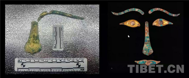 圖為西藏當雄吐蕃墓地出土面具殘件與青海都蘭熱水墓群“2018血渭一號墓”出土面具