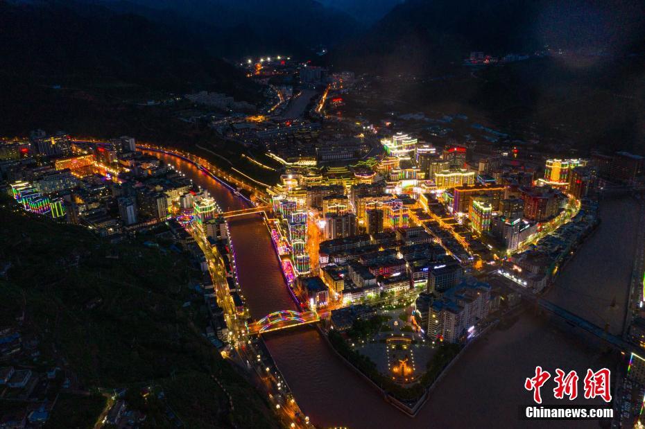 圖為7月29日,俯瞰夜幕下的昌都市區(qū)。中新社記者 何蓬磊 攝