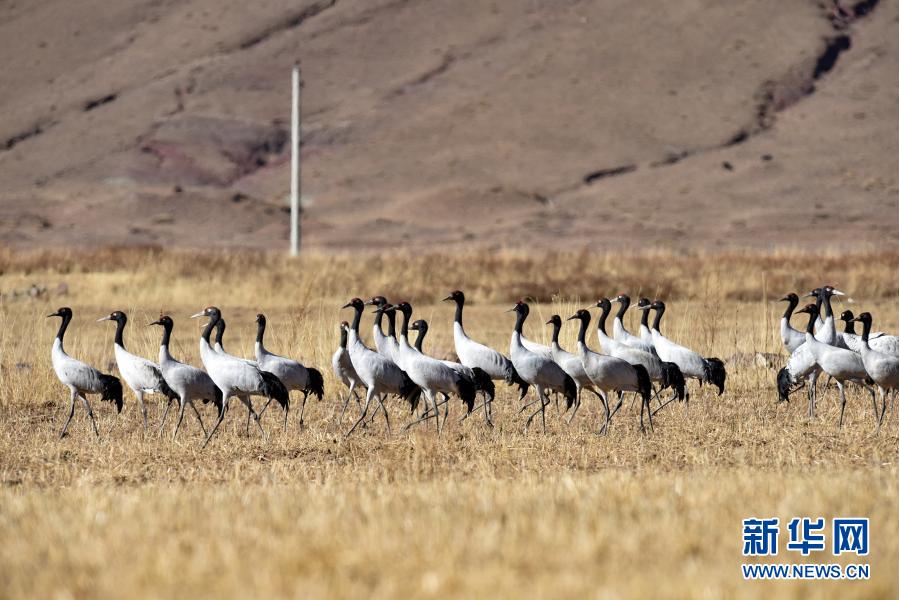 林周縣黑頸鶴自然保護區(qū)里的黑頸鶴(12月12日攝)。新華社記者 張汝鋒 攝