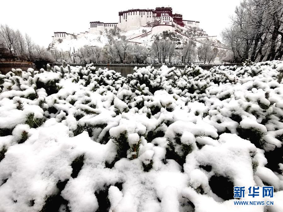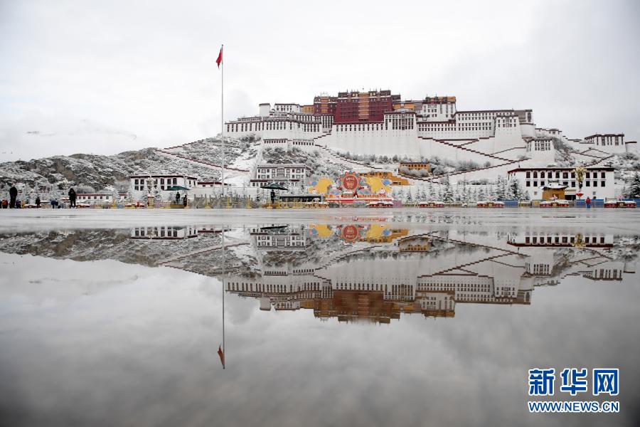 3月14日拍攝的雪中的布達(dá)拉宮。新華社記者 孫瑞博 攝