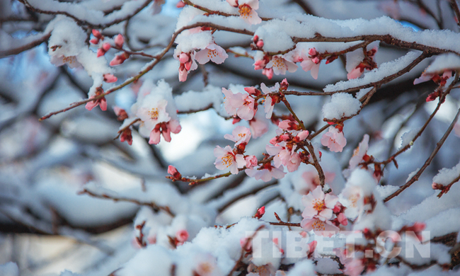 拉薩桃花傲春雪
