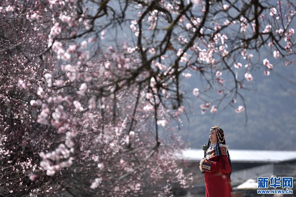3月28日,一名游客在西藏林芝市索松村觀賞桃花。新華社記者 孫瑞博 攝