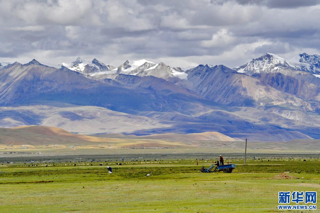 夏日里,西藏拉薩市當(dāng)雄縣境內(nèi)的天然草場(chǎng)綠草如茵,景色優(yōu)美。