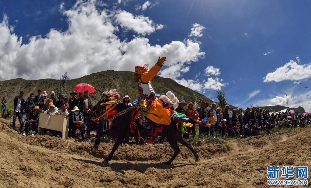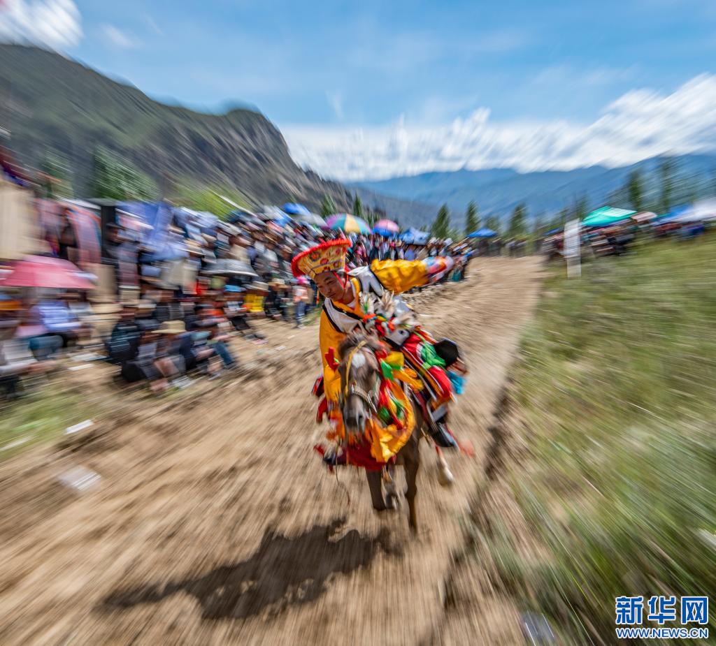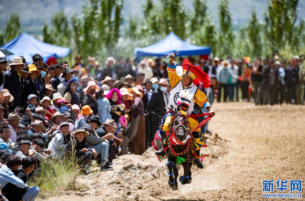 當(dāng)日,位于雅魯藏布江畔山谷里的西藏山南市貢嘎縣昌果鄉(xiāng)崗旦村舉行一年一度的賽馬,迎接即將到來的收獲季節(jié)。
