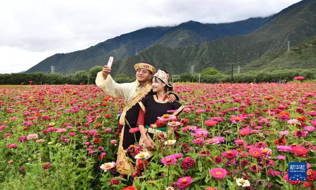 拉薩市達孜區(qū)拉薩河畔的鮮花(9月5日攝)。新華社記者 沈虹冰 攝