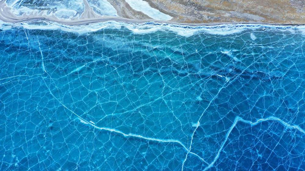 位于西藏山南市洛扎縣和浪卡子縣交界處的普莫雍錯,是喜馬拉雅山脈間的一個咸水湖,湖面海拔5070m。冬季的普莫雍錯湖面會結(jié)冰,冰面通透可見湖底,在陽光的照射下,呈現(xiàn)出動人心魄的藍(lán)。