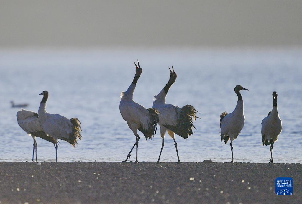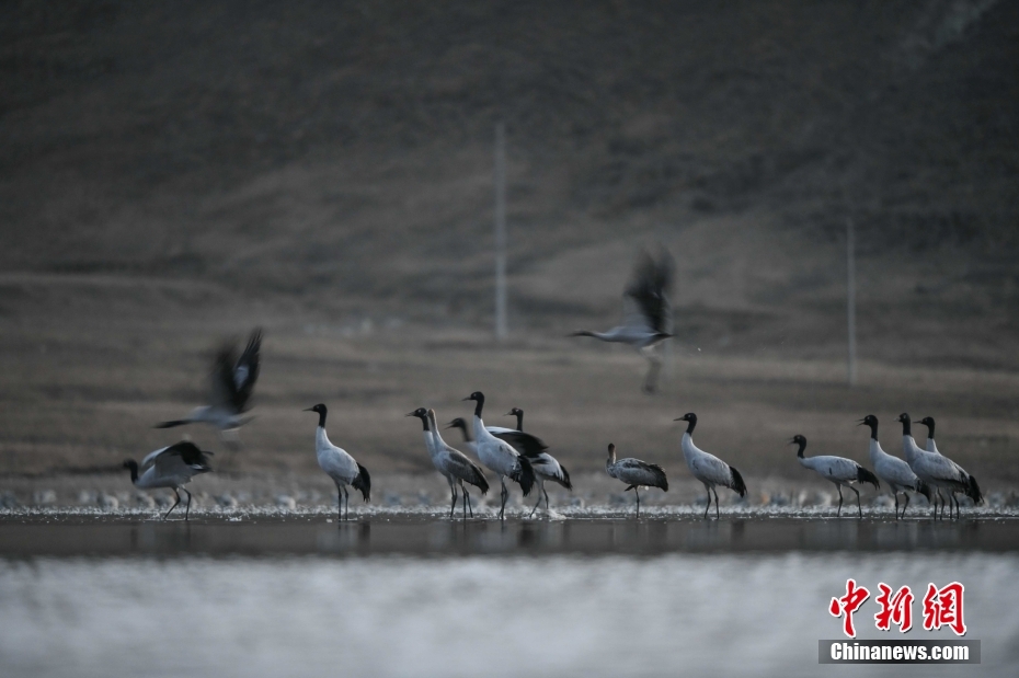 11月23日,在西藏自治區(qū)拉薩市林周縣春堆鄉(xiāng)虎頭山水庫黑頸鶴群覓食。由于適宜的環(huán)境和充足的食物,冬季的拉薩市林周縣成了越來越多黑頸鶴聚集的家園。[詳細]