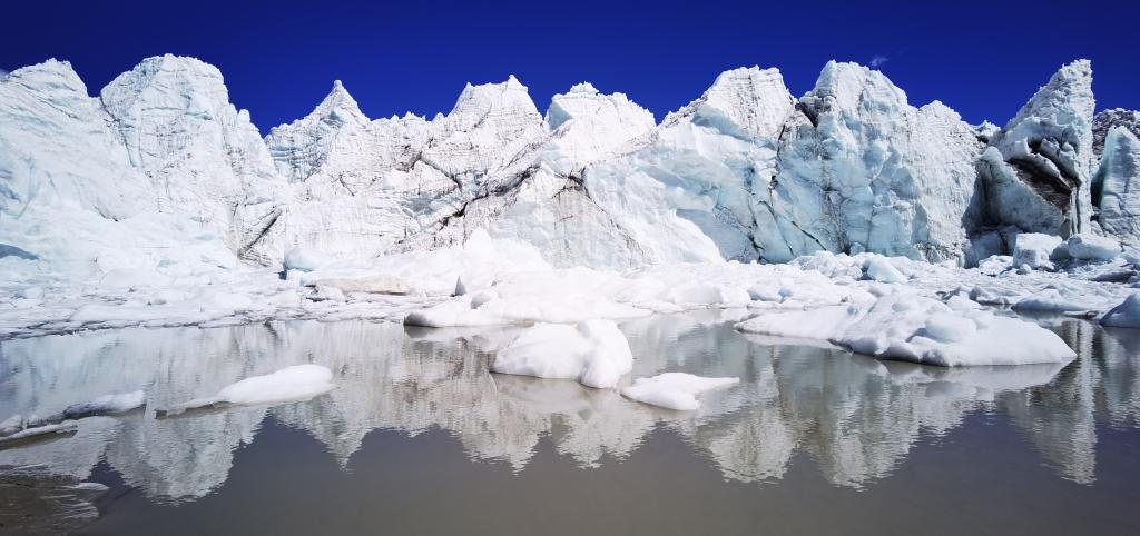 這是位于山南市浪卡子縣的卡若拉冰川,冰川融水形成河流(6月3日攝,無(wú)人機(jī)照片)。新華社記者 沈虹冰 攝