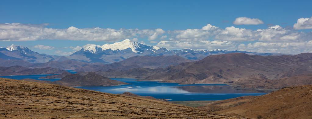 從埡口遠(yuǎn)眺位于山南市浪卡子縣的羊卓雍措(6月3日攝)。新華社記者 姜帆 攝