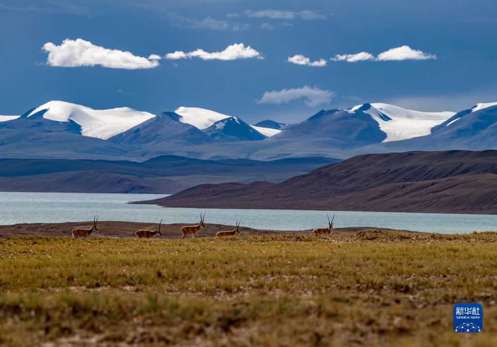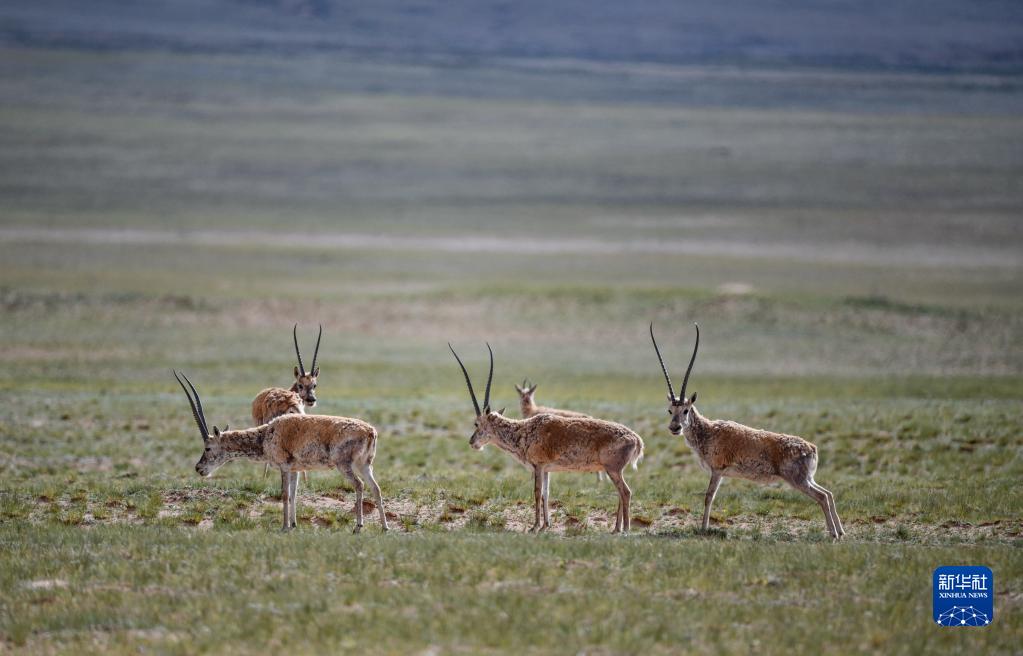 在雙湖縣境內(nèi)拍攝的藏羚羊(7月17日攝)。新華社記者 晉美多吉 攝