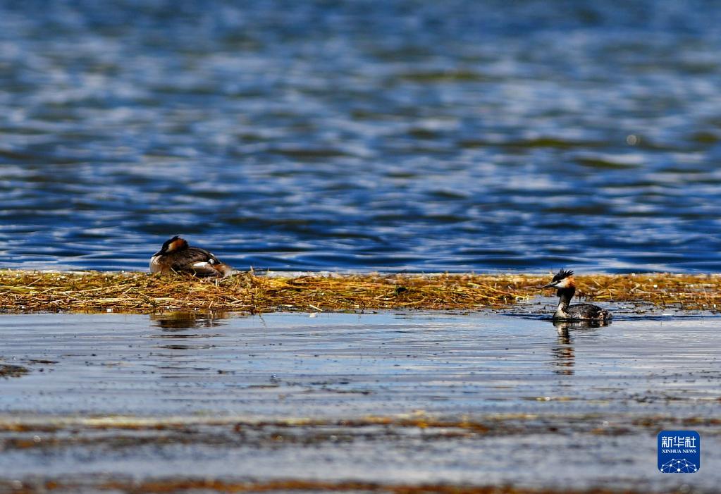 瑪旁雍錯湖面上的鳳頭 (8月2日攝)。新華社記者 張汝鋒 攝