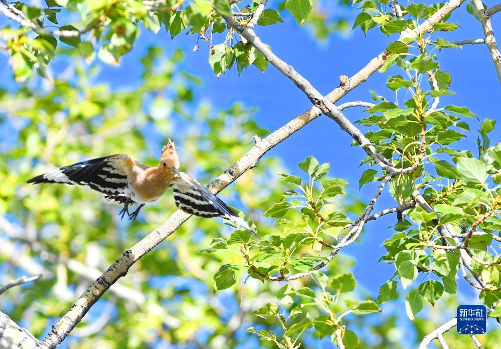 戴勝在樹(shù)叢間飛舞(8月25日攝)。新華社記者 張汝鋒 攝