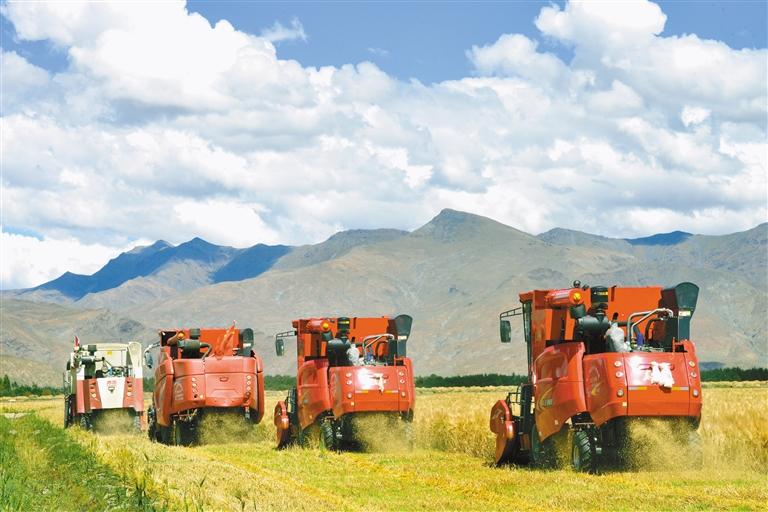 截至目前,江孜縣共完成農作物收割14.90萬畝,占總播種面積的92%,秋收正如火如荼進行,預計今年10月份能夠完成秋收各項任務。當下正值秋收季節(jié),日喀則市南木林縣在嚴抓疫情防控工作的同時,有力有效組織調動人員、機械力量,嚴要求、快行動、強舉措,從速從細全面推進秋收助農工作,確保疫情當下的糧食安全,實現(xiàn)不誤農時、不誤農事。