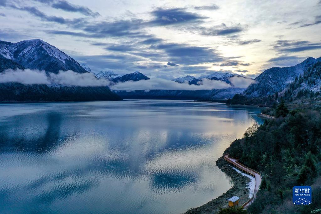 巴松湖位于西藏自治區(qū)林芝市工布江達縣,清澈的湖水在雪后銀色山林的掩映下格外美麗。