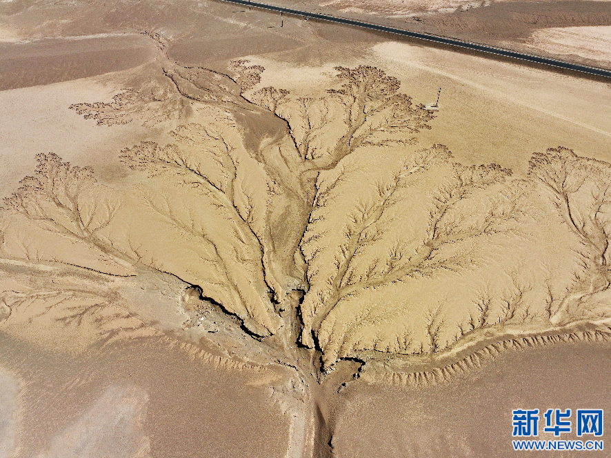 這是4月8日拍攝的位于阿里地區(qū)改則縣的“大地之樹”景觀(無人機(jī)照片)。 新華網(wǎng)發(fā) 曹枝清 攝