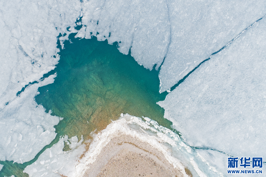隨著氣溫轉(zhuǎn)暖,西藏納木錯進入開湖期。從高空俯瞰,冰面開始解凍,漂浮的冰塊散落在碧綠的湖面上,與遠處的雪山相互輝映,美麗景色讓人嘆為觀止。納木錯,在藏語里意為“天湖”,位于西藏自治區(qū)中部,湖面海拔4718米,是世界上海拔最高的大型咸水湖。