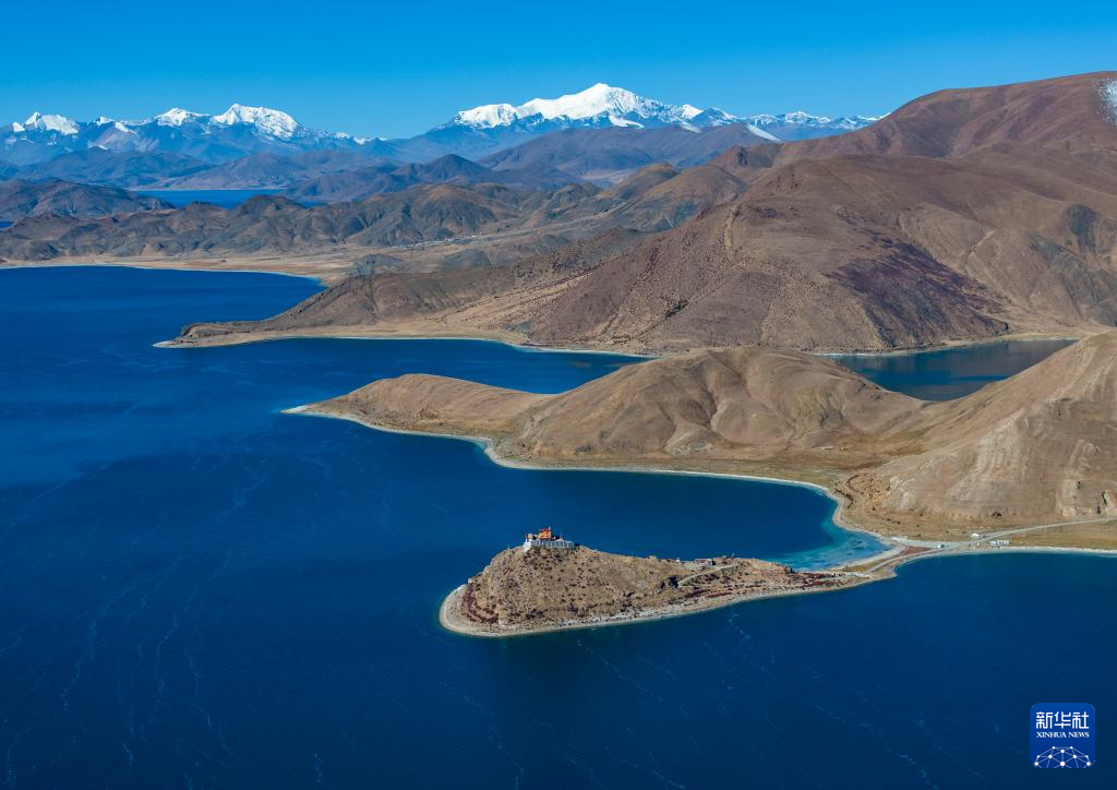 這是10月25日拍攝的羊卓雍錯(cuò)和日托寺。新華社記者 姜帆 攝