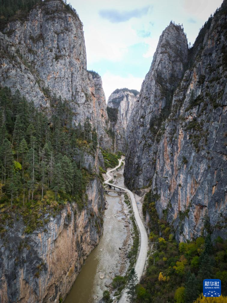 這是10月25日在西藏江達(dá)縣波羅鄉(xiāng)拍攝的吉榮峽谷一景(無人機(jī)照片)。新華社記者 聶毅 攝