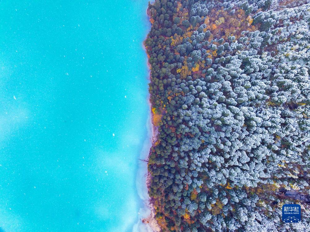 時(shí)值金秋,西藏林芝市秋色已濃,黃葉與初雪交織,流水并雪山輝映,景色如詩如畫。