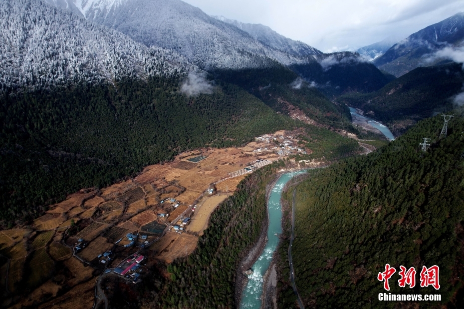 2月22日,航拍西藏林芝帕隆藏布雪景。林芝位于西藏東南部,平均海拔約3100米,氣候濕潤。(無人機(jī)照片)中新社記者 李林 攝