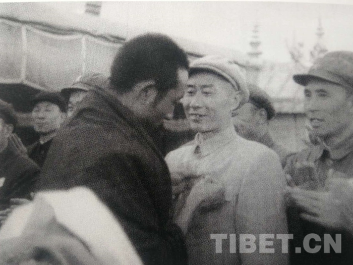 1952年4月28日,十世班禪額爾德尼?確吉堅贊及其堪布會議廳委員會全體人員從青海返回西藏,到達(dá)拉薩。張經(jīng)武和人民解放軍駐拉薩機關(guān)、部隊、西藏地方政府各級官員、西藏地方部隊,三大寺喇嘛、拉薩市僧俗群眾等兩萬多人迎接。圖為張經(jīng)武和十世班禪的合影。