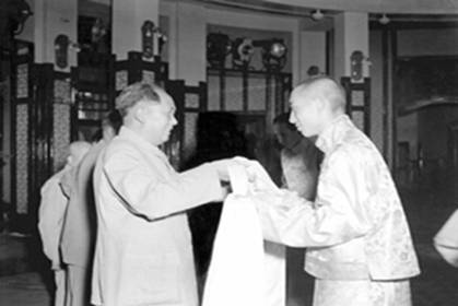 1949年10月1日,中華人民共和國(guó)成立,十世班禪大師當(dāng)天致電毛澤東主席和朱德總司令,熱情頌揚(yáng)中華人民共和國(guó)成立,稱“人民之康樂可期,國(guó)家之復(fù)興有望”,并希望西藏也能早日獲得解放。