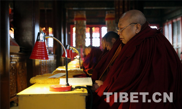 8時(shí)30分,法會(huì)開(kāi)始,教職人員按既定儀軌,誦讀經(jīng)文,虔誠(chéng)祈禱,法會(huì)現(xiàn)場(chǎng)肅穆莊重。(中國(guó)西藏網(wǎng) 記者/楊月云)