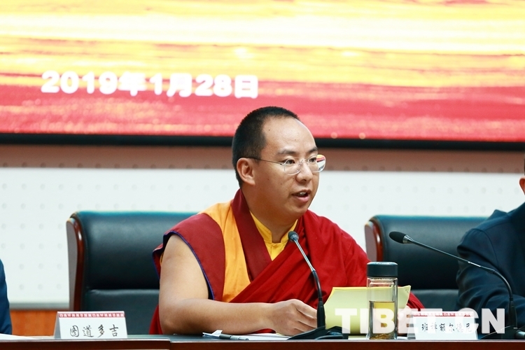 圖為十一世班禪在研討會(huì)上講話。攝影:陳衛(wèi)國(guó)
