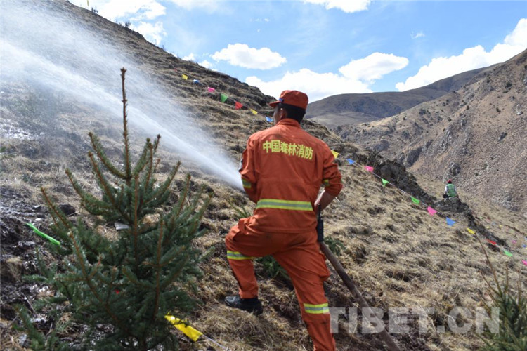 圖為昌都市森林消防支隊(duì)江達(dá)中隊(duì)積極參加駐地植樹(shù)活動(dòng)