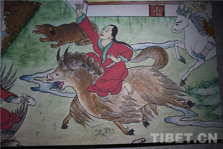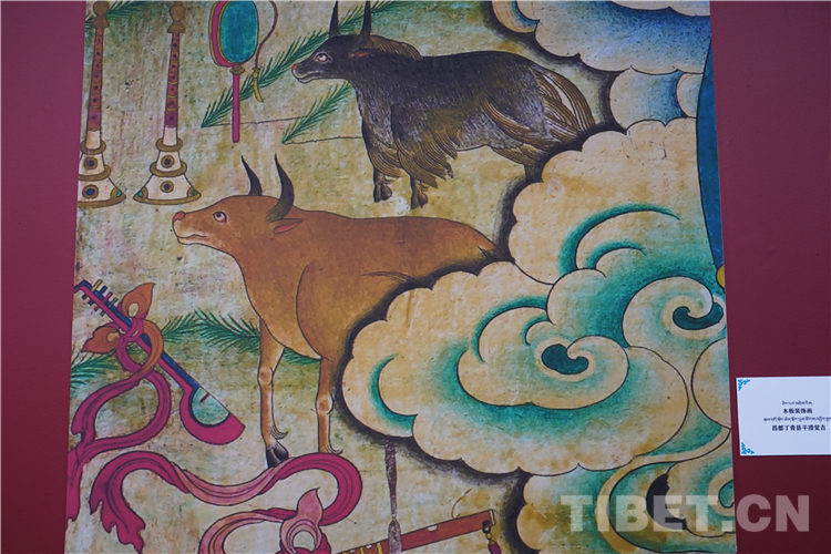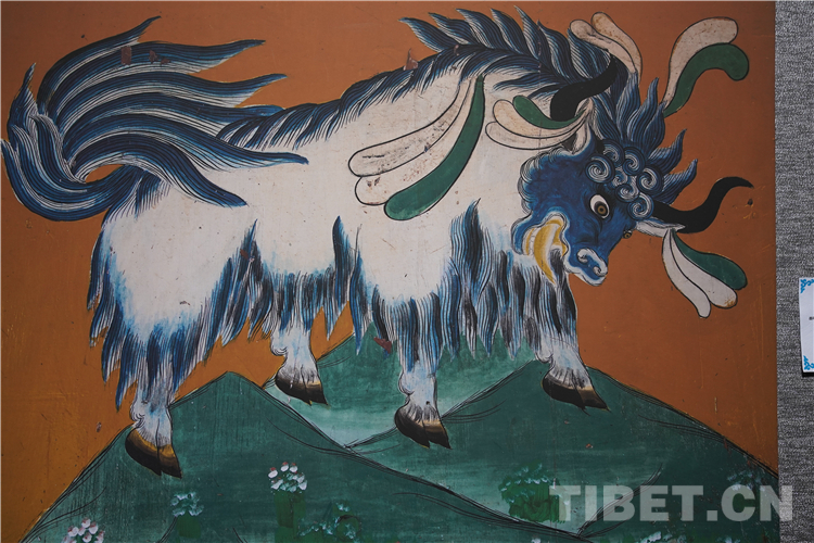 牦牛走進了藏族人民的生活,在幾千年的相處中,牦牛升華成任何一種事物和元素,完美融入了壁畫、唐卡、建筑等多種藝術創(chuàng)作中。