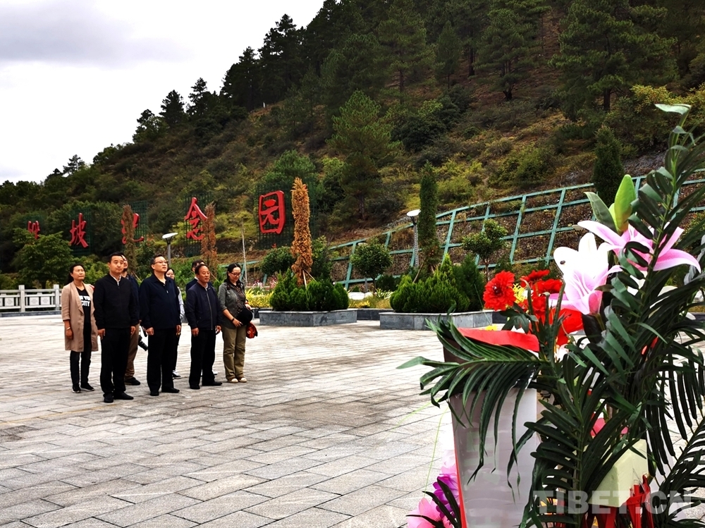 英雄坡上,紀(jì)念碑上鐫刻的“革命烈士永垂不朽”幾個(gè)大字,令人肅然起敬,大家垂首肅立默哀。公保代表中國(guó)西藏信息中心仔細(xì)整理花籃緞帶,并敬獻(xiàn)花籃。隨后,一行人緩步繞行紀(jì)念碑、陵墓,祭奠忠魂。