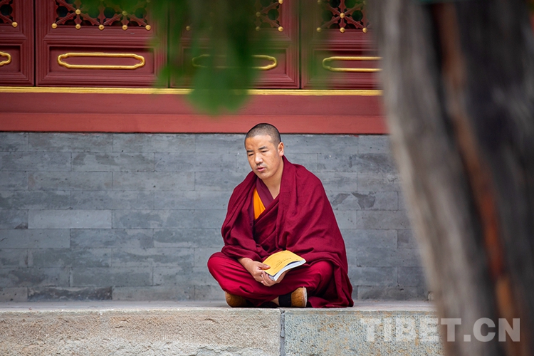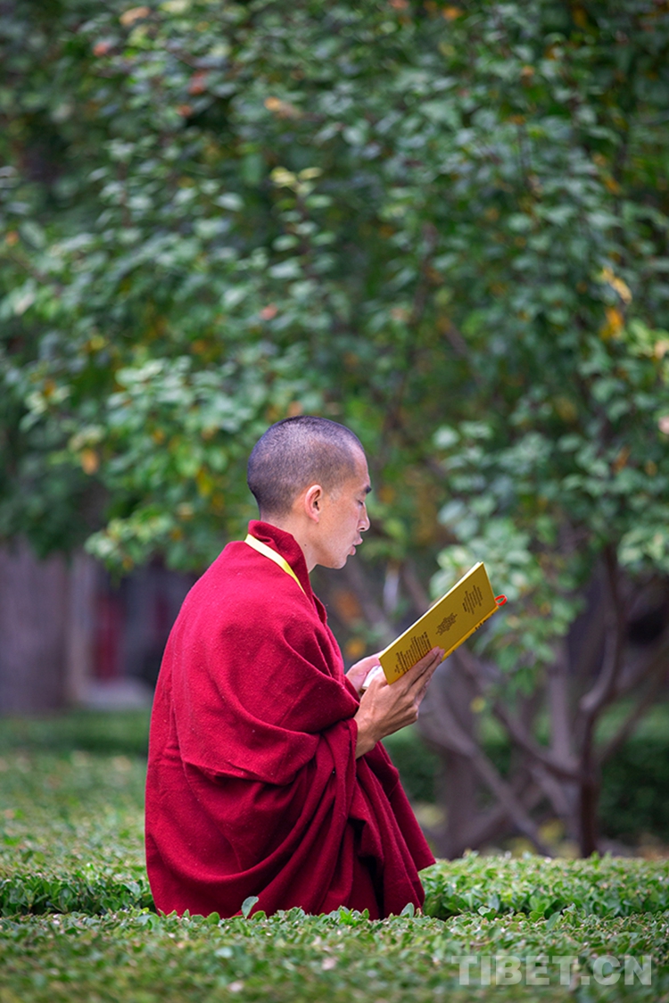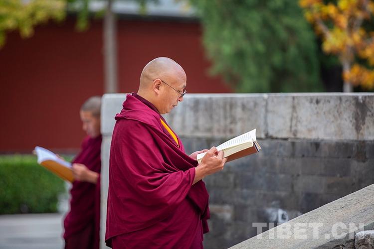 中國西藏網(wǎng)訊 10月29日,深秋的清晨,位于北京西黃寺的中國藏語系高級佛學(xué)院內(nèi),古柏蒼蒼,清凈肅穆。還有半個小時,2020年藏傳佛教第十六屆“拓然巴”高級學(xué)銜畢業(yè)考試辯經(jīng)考試就將準時開始。等待參加辯經(jīng)考試的學(xué)僧們,正在西黃寺大殿前誦經(jīng),抓緊時間為考試進行最后的準備。大家或席地而坐,或立定一隅,或踱步前行,梵唱聲聲,余音繞梁。(中國西藏網(wǎng) 攝影/許娜 編輯/周晶)