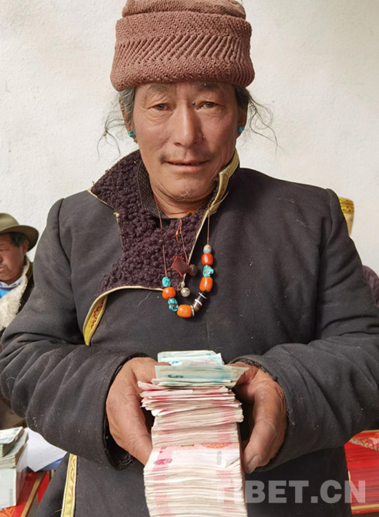 圖為參與合作社的村民們領(lǐng)到了分紅款