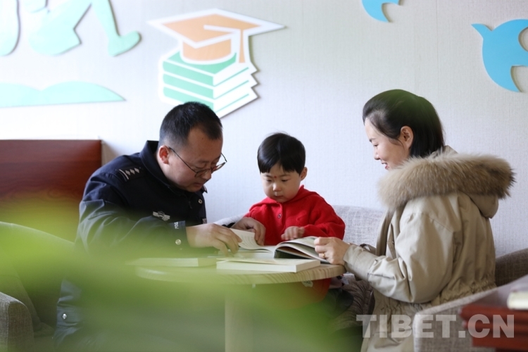 圖為西藏出入境邊防檢查總站聶拉木出入境邊防檢查站民警薛鵬飛和家人在一起 攝影:鄒興國(guó)