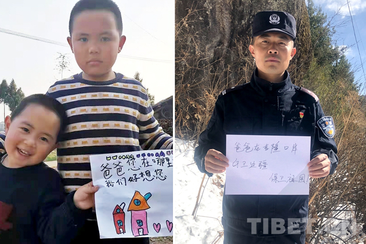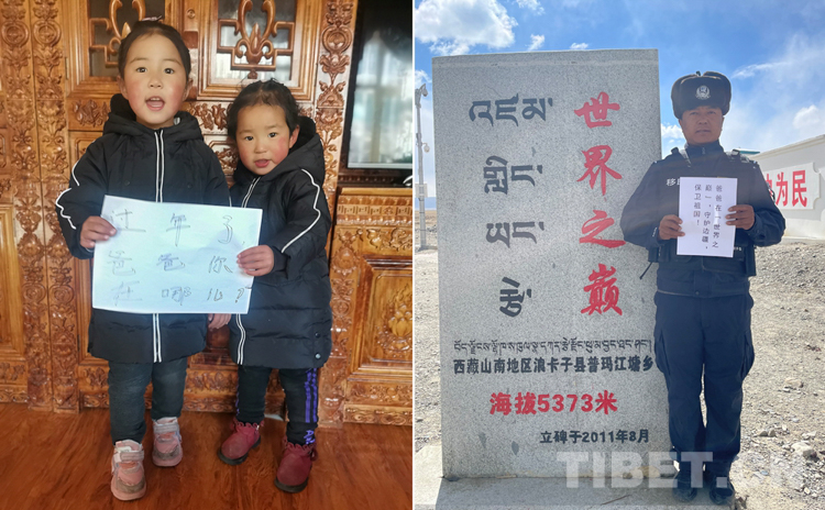 這是一張拼版照片,小女孩名叫旦增諾央,今年8歲,到現(xiàn)在還沒有和爸爸一起過過年。爸爸旦增尼瑪是日喀則邊境管理支隊亞熱邊境派出所所長,春節(jié)將至,他和戰(zhàn)友們堅守在海拔5300多米的中尼邊境一線,他通過這種方式表達對孩子的思念,相信慢慢長大的孩子一定能夠理解自己。