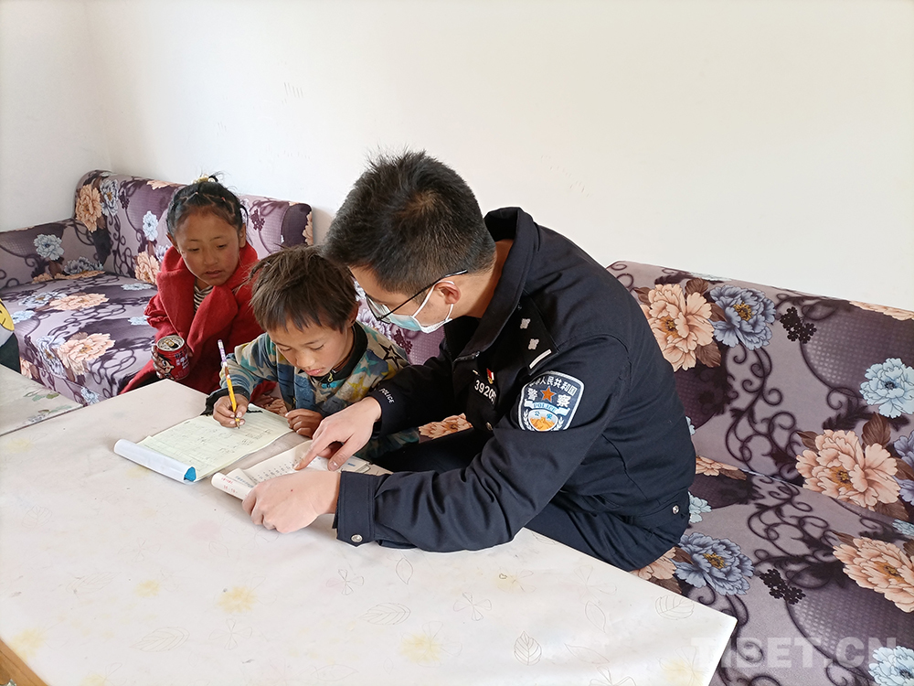 上察隅邊境派出所民警在一次走訪中了解到這個(gè)家庭的情況,將其納入了幫扶計(jì)劃,從此,上察隅邊境派出所轄區(qū)多了兩個(gè)“小警情”。每逢周末、節(jié)假日,民警們都會(huì)主動(dòng)來家中為孩子補(bǔ)課。長(zhǎng)期以來,兩個(gè)孩子親切地稱呼民警為“警察爸爸”。