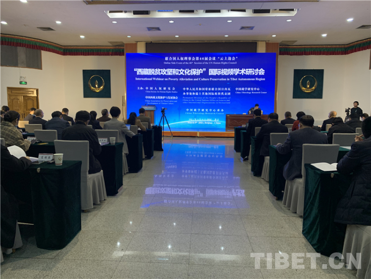中國西藏網(wǎng)訊 3月9日,聯(lián)合國人權(quán)理事會第46屆會議“西藏脫貧攻堅和文化保護”云上邊會采用線上線下結(jié)合方式舉行。線下主會場設在位于北京的中國藏學研究中心。來自境內(nèi)外有關(guān)減貧和文化保護領(lǐng)域的專家學者參加了研討。