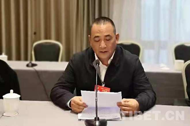 圖為全國(guó)政協(xié)委員、西藏自治區(qū)阿里地區(qū)政協(xié)副主席洛桑山丹做會(huì)議發(fā)言。圖片由受訪者提供