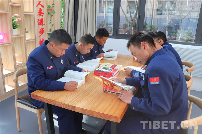 圖為西藏昌都市卡若區(qū)森林消防中隊(duì)學(xué)習(xí)黨史書籍
