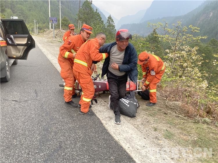 圖為第二批次歸建小隊(duì)救助受困摩托車(chē)主