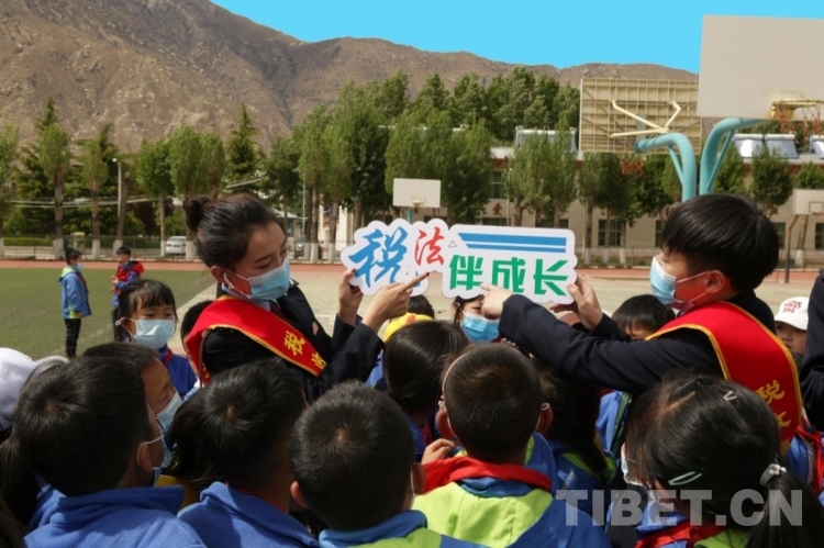“稅官們用淺顯易懂的藏漢雙語向同學(xué)們講解稅收的起源等稅收知識(shí),不僅豐富了孩子們的課外知識(shí),還能幫助他們從小增強(qiáng)納稅意識(shí)。剛才還有學(xué)生跑來告訴我,將來也要像叔叔們一樣,為祖國收稅!”年級主任巴桑笑著告訴前來為孩子上課的稅務(wù)干部們。