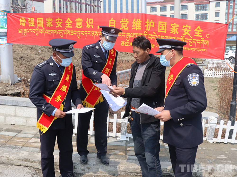 “12339,是國家安全機(jī)關(guān)受理公民和組織舉報(bào)電話。這條熱線是由國家安全部設(shè)立的,為了方便公民組織向國家安全機(jī)關(guān)舉報(bào)行為或線索?!痹谖鞑厝湛t市的街頭,日喀則邊境管理支隊(duì)民警達(dá)娃卓嘎為過往群眾講解“全民國家安全日”的相關(guān)知識(shí)。
