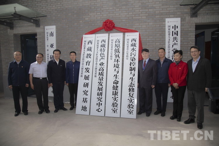 研討會(huì)開幕式之前,與會(huì)領(lǐng)導(dǎo)為西藏教育發(fā)展研究基地、西藏特色產(chǎn)業(yè)高質(zhì)量發(fā)展研究中心、高原低氧環(huán)境與生命健康實(shí)驗(yàn)室、西藏水污染控制與生態(tài)修復(fù)實(shí)驗(yàn)室同時(shí)掛牌揭幕。大會(huì)主旨發(fā)言之后,西藏民族大學(xué)黨委常委、副校長史本林、西藏駐格爾木辦事處(藏青工業(yè)園區(qū))黨委書記邱川共同簽訂雙方合作框架協(xié)議,旨在加強(qiáng)科研交流合作,共同為西藏社會(huì)高質(zhì)量發(fā)展做出貢獻(xiàn)。