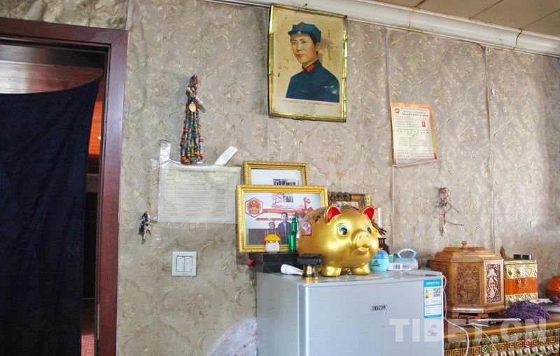 次卓瑪現(xiàn)在的家位于西藏自治區(qū)山南市隆子縣玉麥鄉(xiāng)玉麥村。女兒、女婿、小外孫與她一起組成了這個溫馨的小家庭。他們是2018年4月,從300多公里外的隆子縣熱榮鄉(xiāng)舉家搬遷到玉麥的。新居進行了新的裝潢,更換了許多新家具,但這幅毛主席像仍然被次卓瑪帶到了新家,恭恭敬敬地掛到了家中的醒目位置。